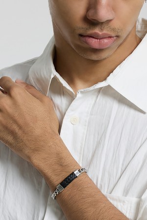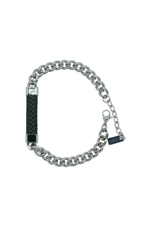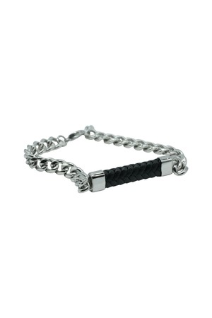 씨알에스디엘 가죽 포인트 실버 체인 팔찌