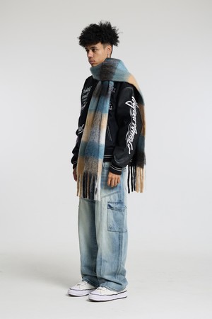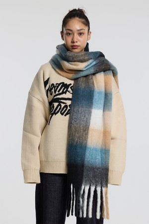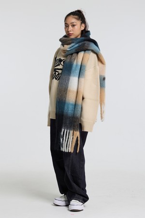 씨알에스디엘 볼드 체크 브러쉬 헤어리 니트 머플러