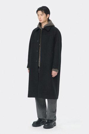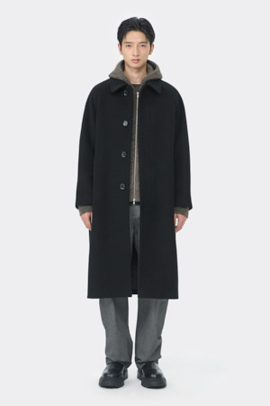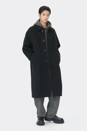 Black Cashmere Blended Oversized Fit Balmacaan Coat