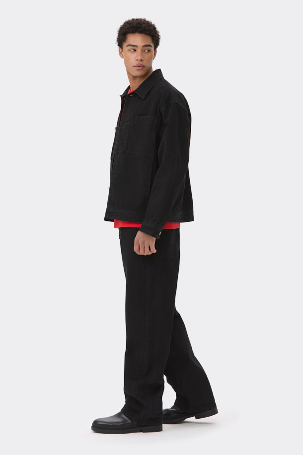 Black Carpenter Detail Wale Jeans