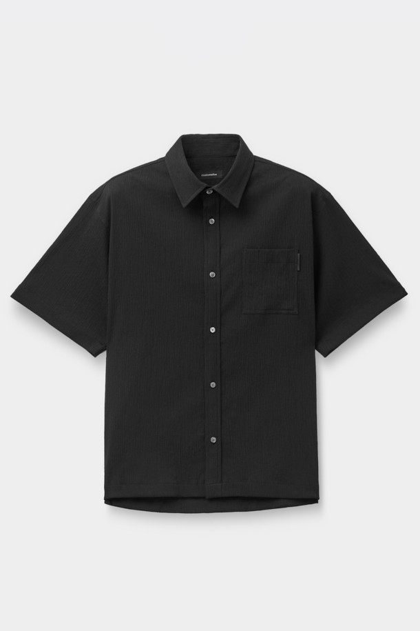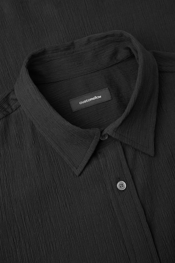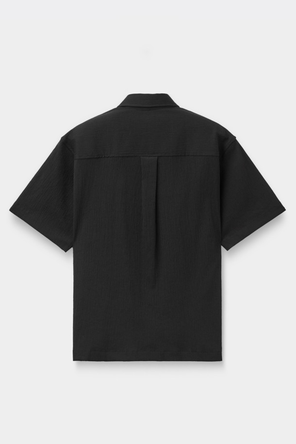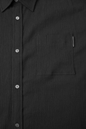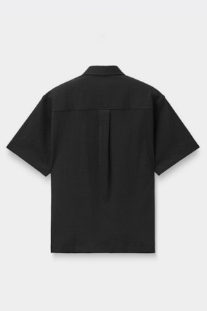 Black Relaxed Solid Pleats Half Shirt
