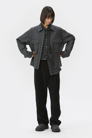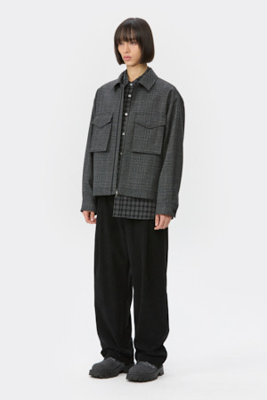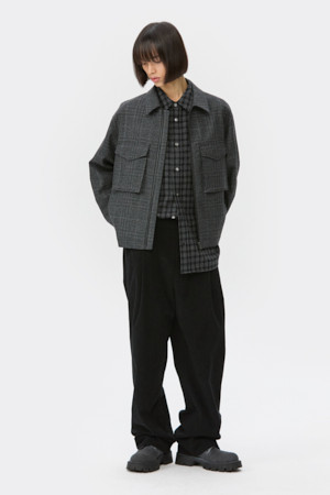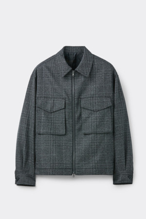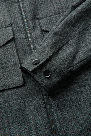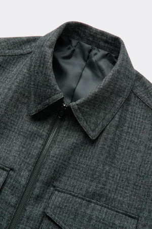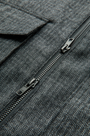 Black Wool Tweed Zip Jacket