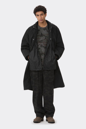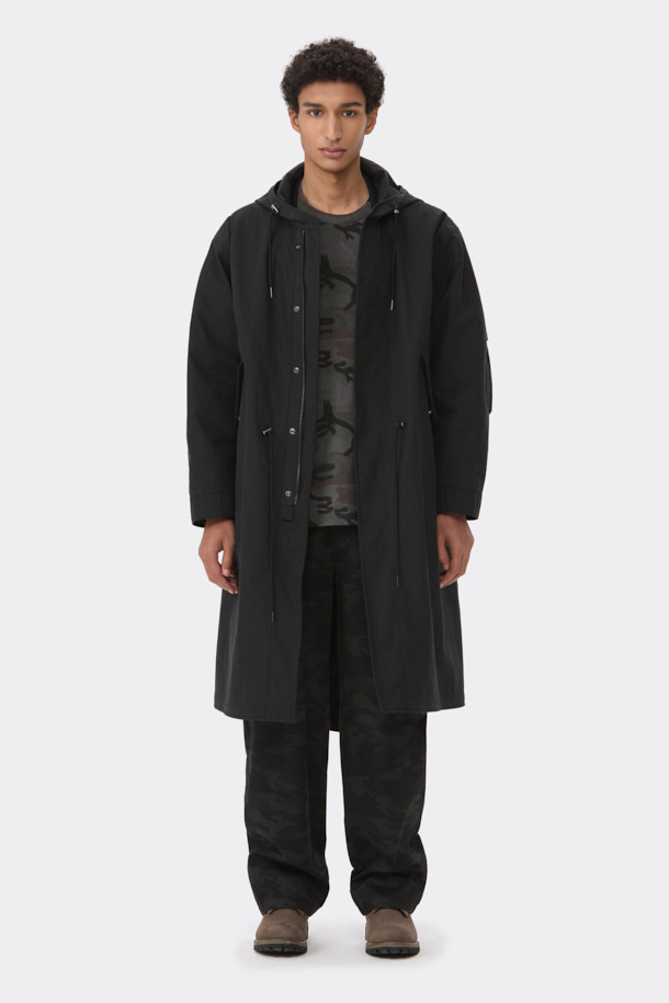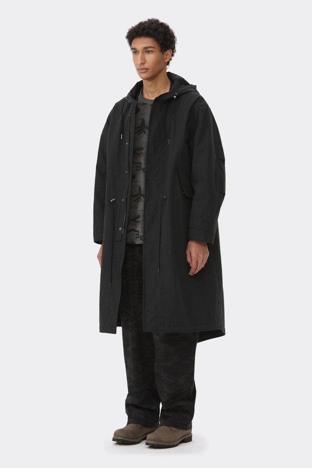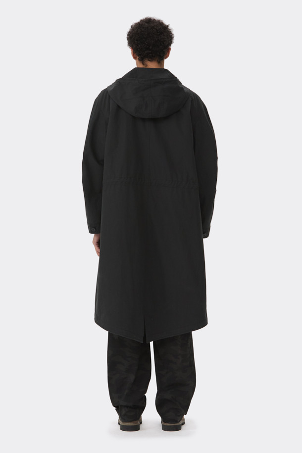 Black Detachable Fishtail Hood Coat