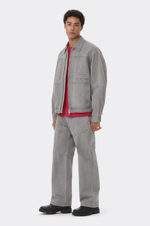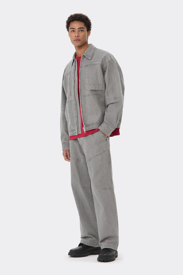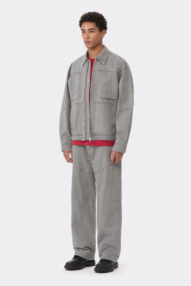 Grey Cotton Zip Trucker