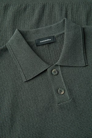 Khaki Textured Classic Collar Sweater