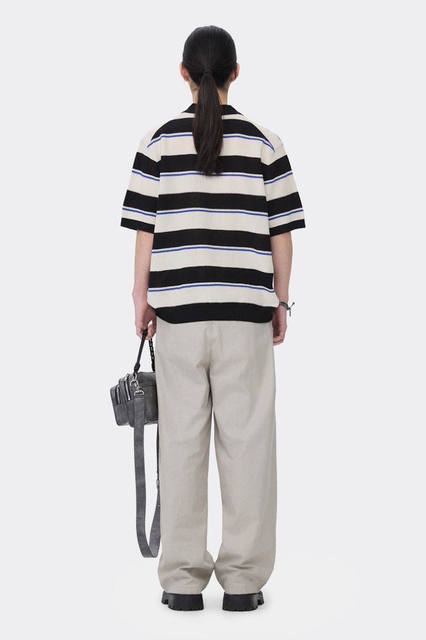 Black Fresh Lounge Stripes Collar Sweater