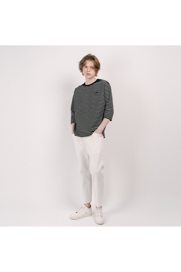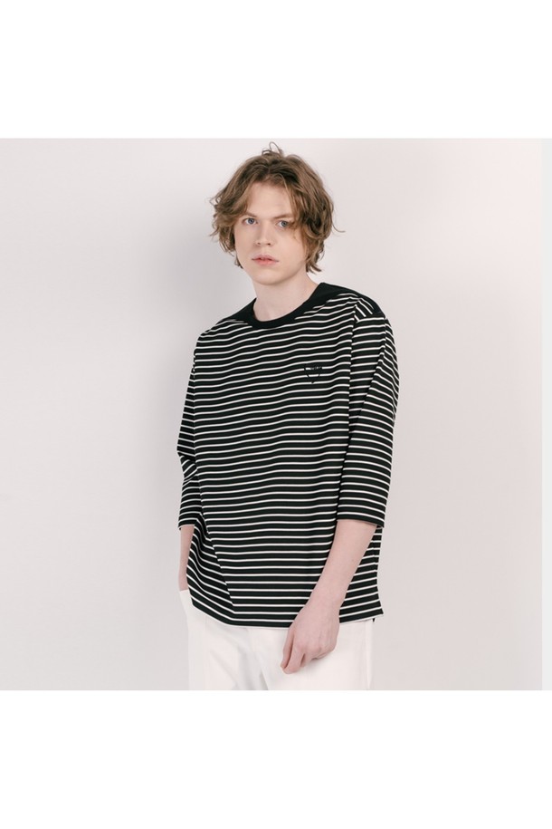 어깨배색 선염스트라이프 7부소매 티셔츠 CXS25SKRT303 BLA