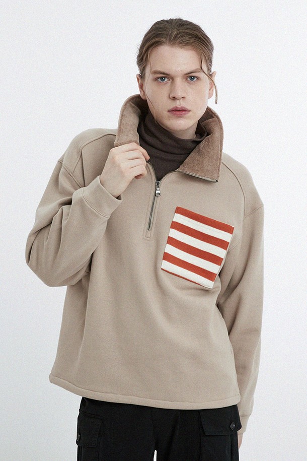 터틀넥 퍼배색 하프집업 스웨트셔츠 CXS24WKKTA08 BEI