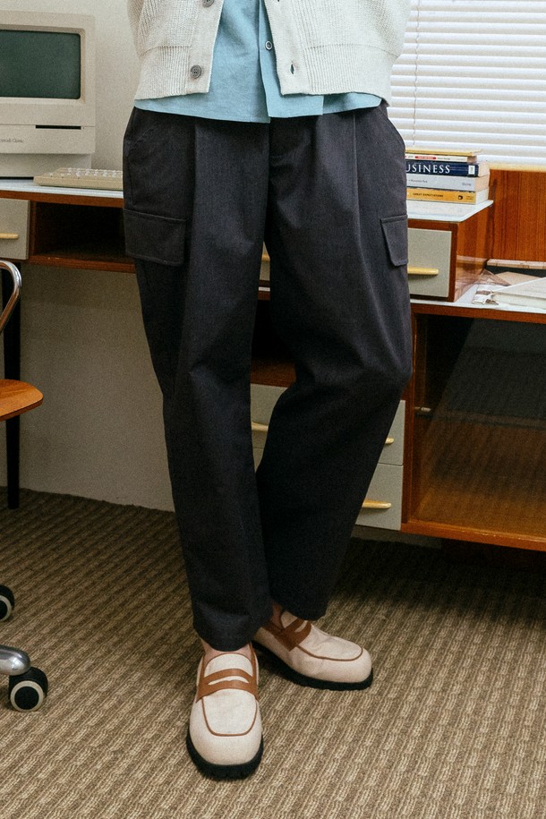 [커스텀어스] 후다 페이크포켓 카고형 원턱라인 세미와이드 팬츠 CXS24MWPT502 GRY