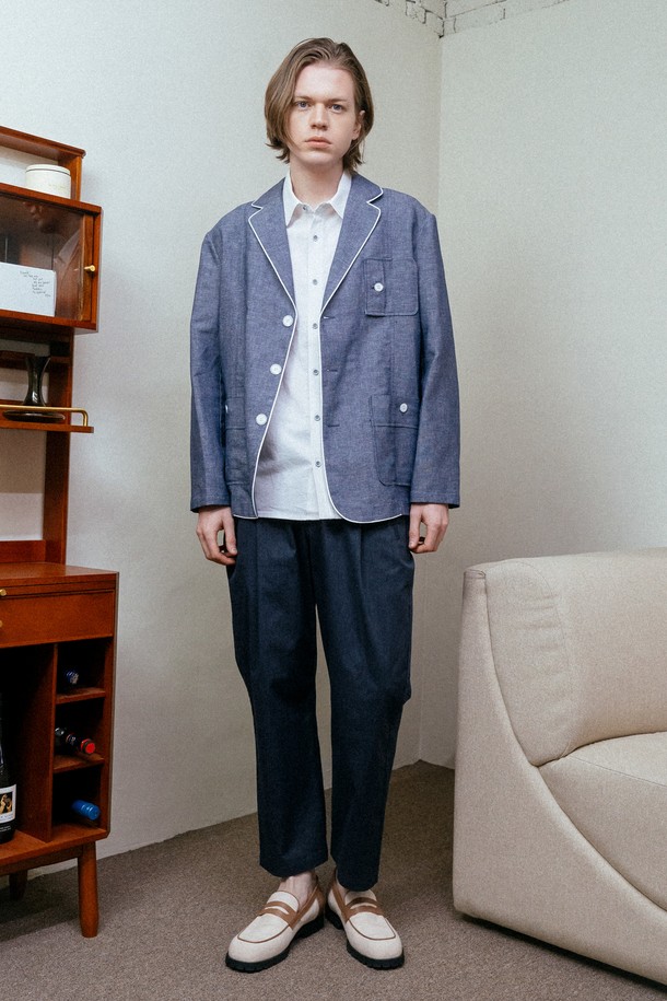 [커스텀어스] 립포켓 원턱라인 세미와이드 남자팬츠 CXS24MWPT413 NAV