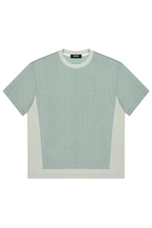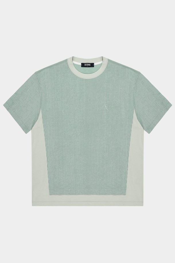 [커스텀어스] 선염스트라이프 배색레이어드 라운드 반팔티셔츠 CXS24MKRT505 GRN