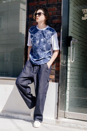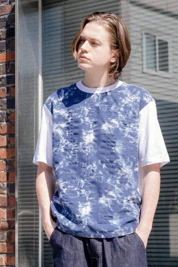 [커스텀어스] 우븐프린트 배색 라운드 반팔티셔츠 CXS24MKRT503 NAV
