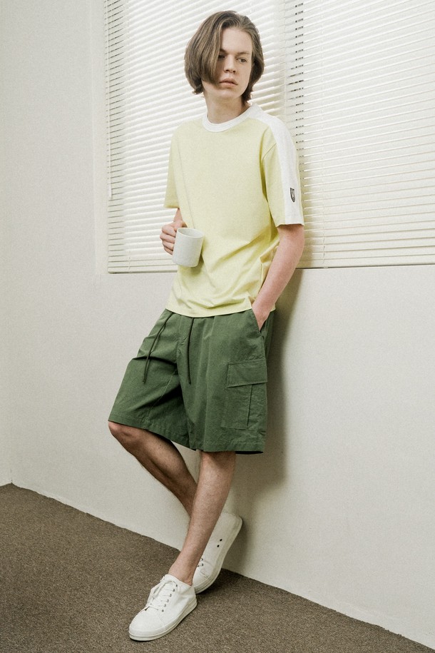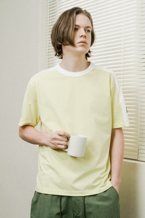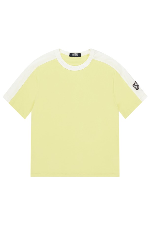 [커스텀어스] 어깨배색 와펜자수 라운드 반팔티셔츠 CTS24MKRT321 YEL