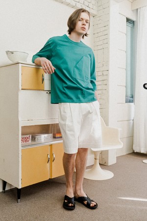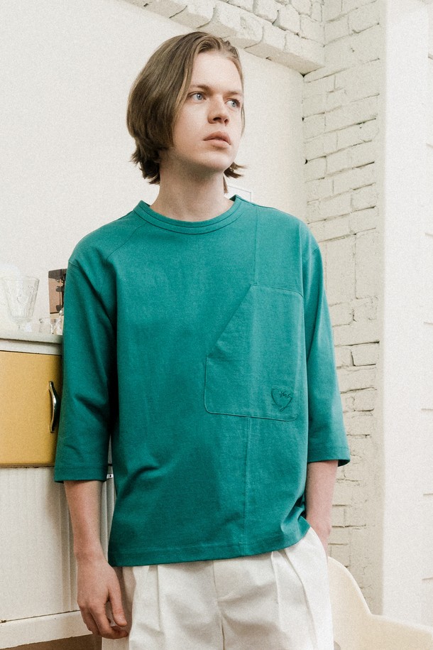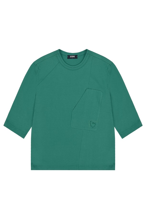 [커스텀어스] 사선절개 하트자수 7부소매 라운드티셔츠 CXS24MKRT309 GRN