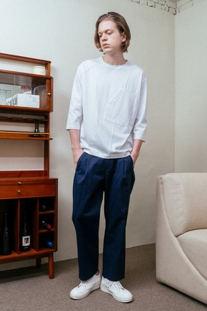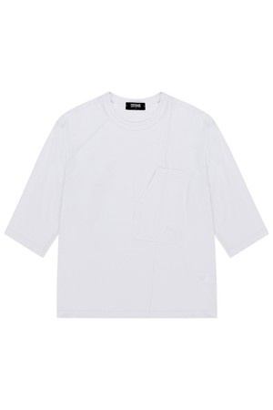 [커스텀어스] 사선절개 하트자수 7부소매 라운드티셔츠 CXS24MKRT309 WHI