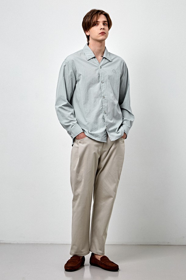 [커스텀어스] 브이넥 카라 바이오워싱 셔츠 CXS24SWSH271 MIN