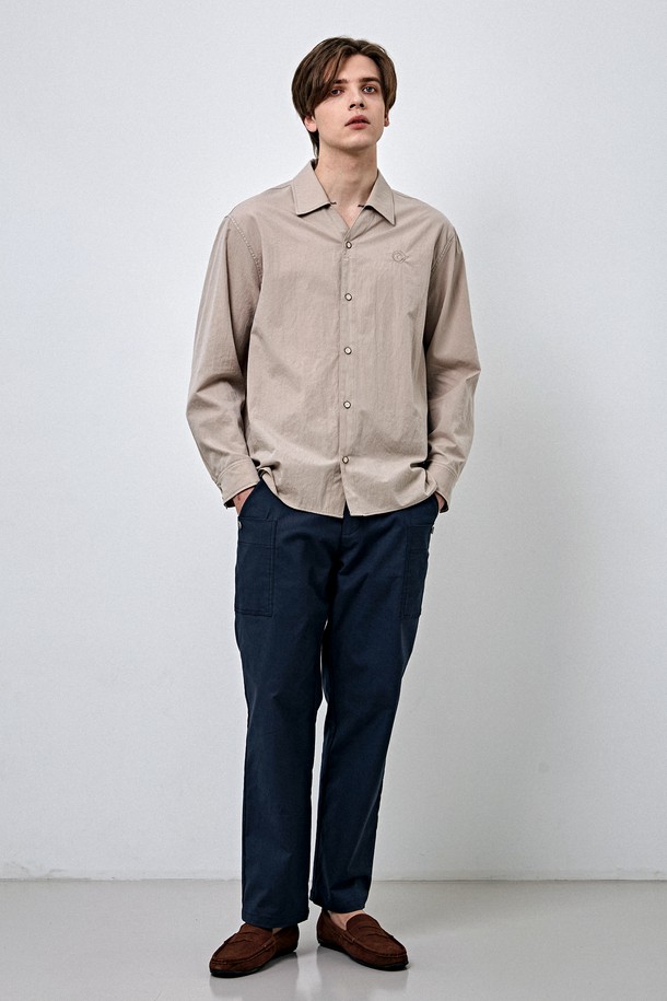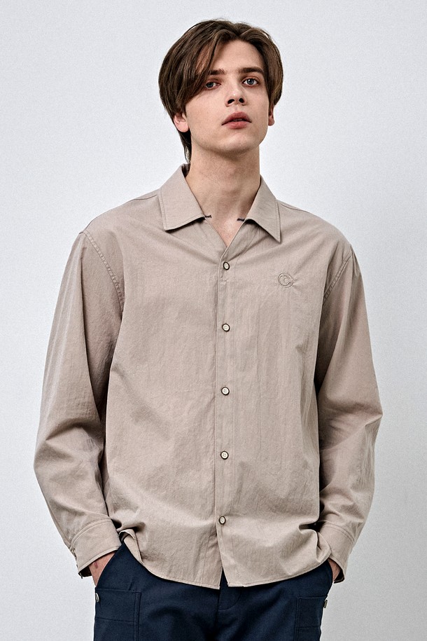 [커스텀어스] 브이넥 카라 바이오워싱 셔츠 CXS24SWSH271 BEI