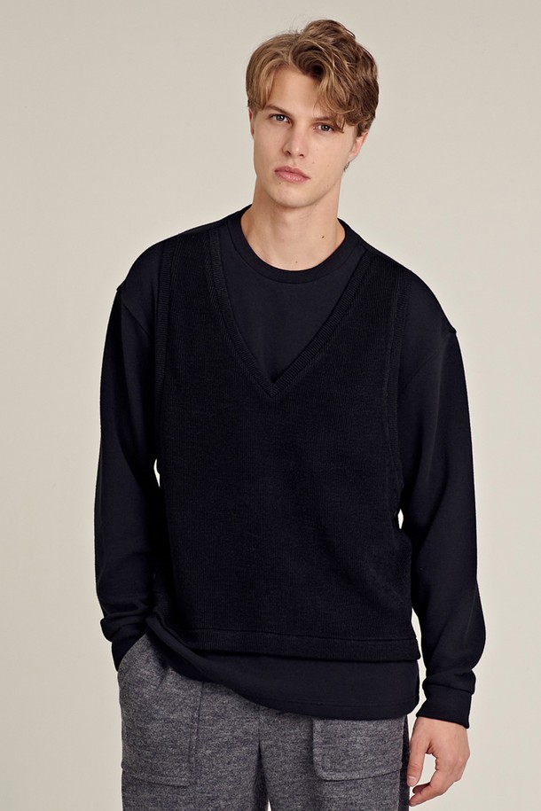[커스텀어스] V-neck 베스트 레이어드 오버핏 맨투맨 CXS20WKMTA74