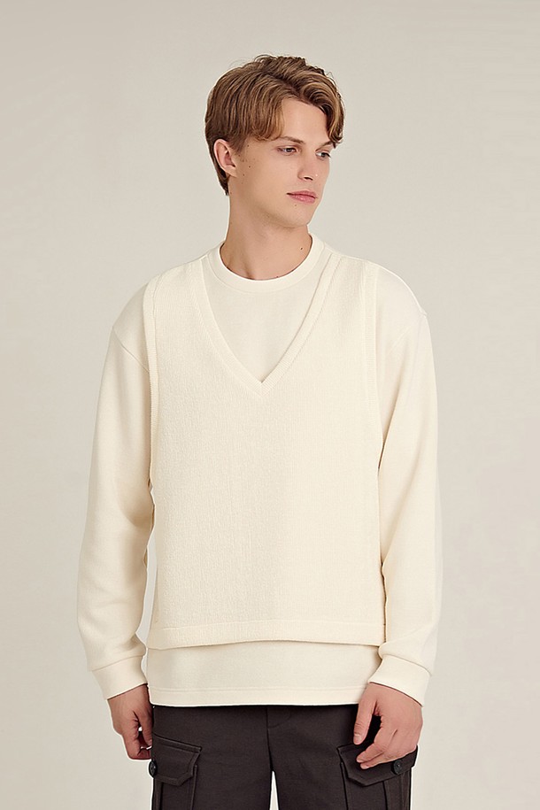 [커스텀어스] V-neck 베스트 레이어드 오버핏 맨투맨 CXS20WKMTA74