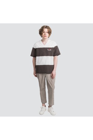 브이넥 빅보더 스트라이프 남자 반팔 티셔츠 CXS25MKVT423 BRO