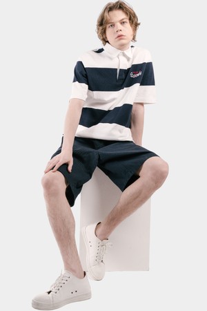바이오 워싱 오버핏 밴딩 남자 하프 팬츠 CXS25MWHP416 NAV