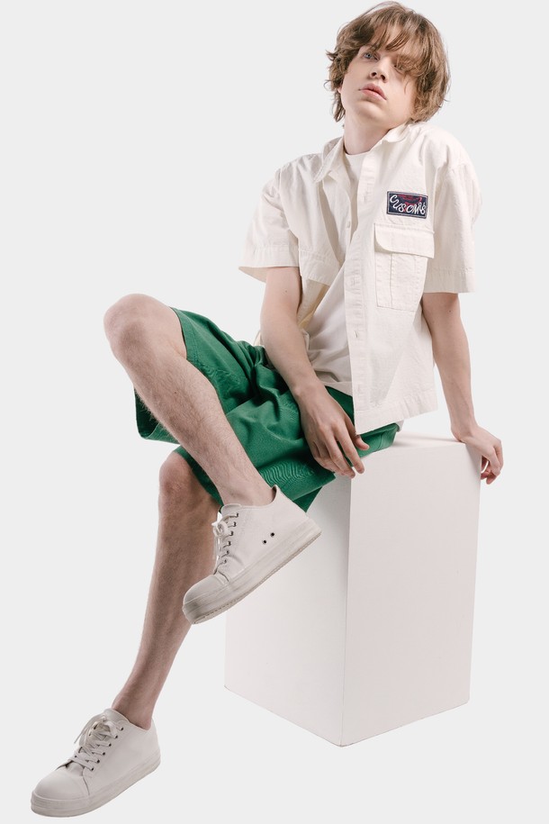바이오 워싱 오버핏 밴딩 남자 하프 팬츠 CXS25MWHP416 GRN