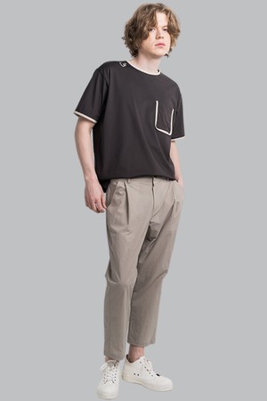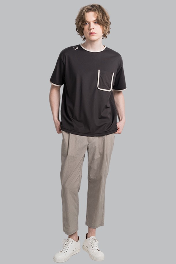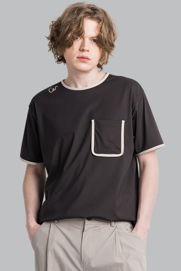 썸머 쿨터치 네크 소매 랍바배색 남자 라운드 반팔 티셔츠 CXS25MKRT603 BRO