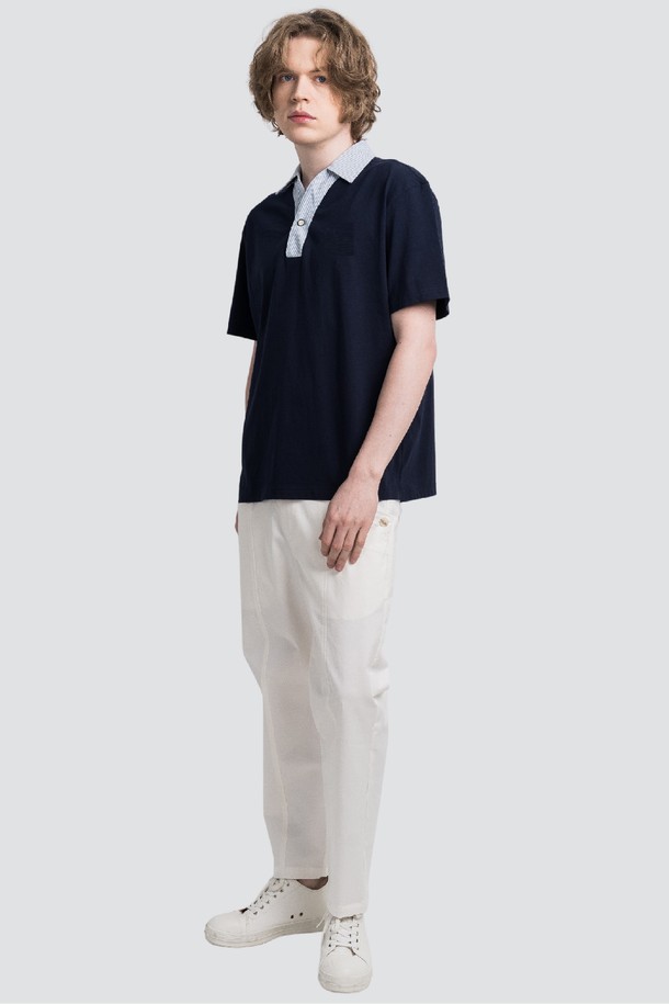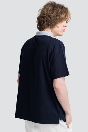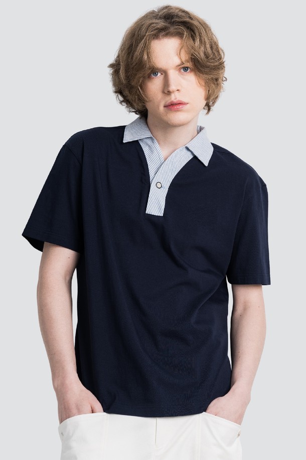 스트라이프 우븐배색 Y넥 남자 반팔 카라티 CXS25MKKT612 NAV
