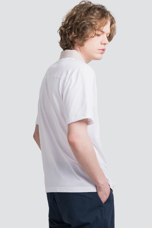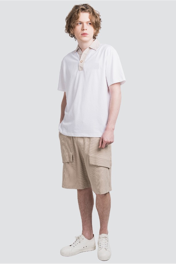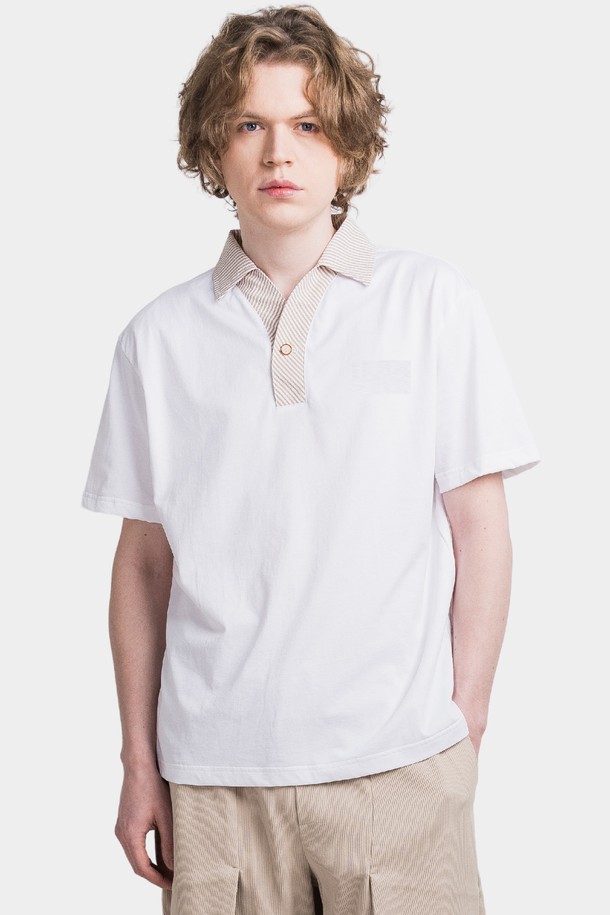 스트라이프 우븐배색 Y넥 남자 반팔 카라티 CXS25MKKT612 WHI