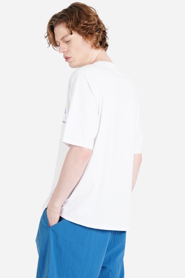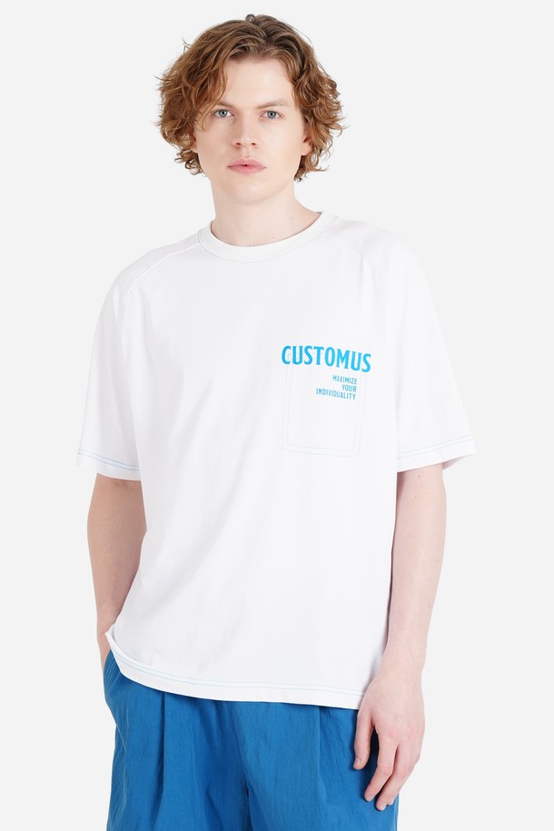 [커스텀어스] 스티치배색 로고프린트 남자 라그랑 반팔 라운드 티셔츠 CXS25MKRT703 WHI