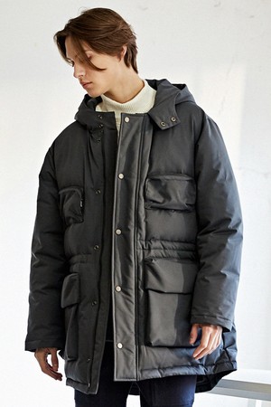 빅사이즈 4-입체포켓 오버핏 하프기장 후드다운점퍼 CTS22WWDJB50 GRY