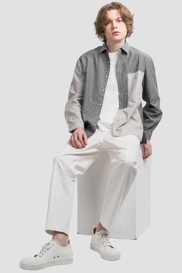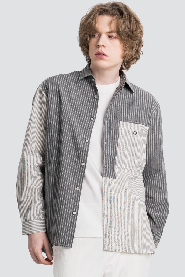 면분할 스트라이프 톤배색 남성우븐셔츠 CXS23SWSH281 GRY