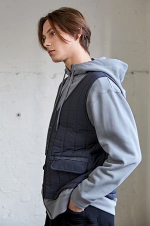 세로퀼팅 패딩베스트 레이어드 헤비쭈리 오버핏 남자 후드집업 CTS22WKHJA48 GRY