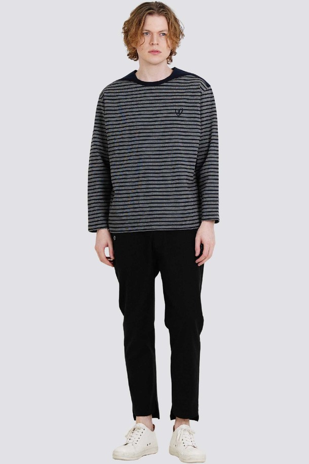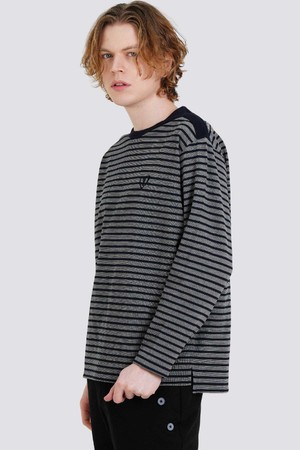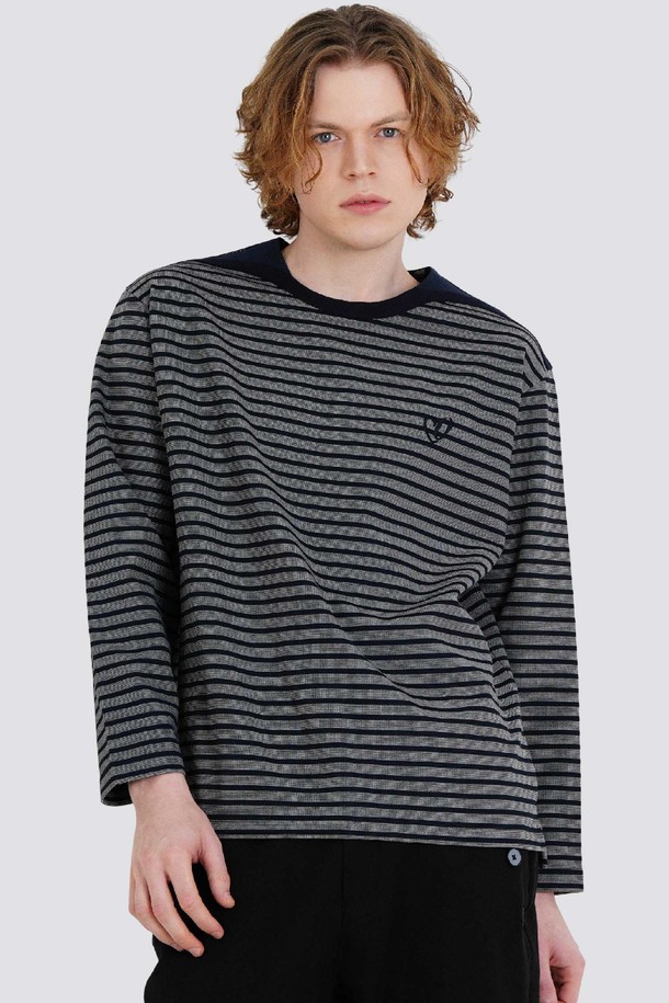 어깨배색 선염스트라이프 긴팔 라운드티셔츠 CXS25FKRT802 GRY