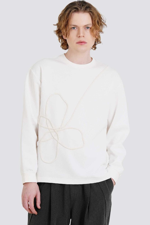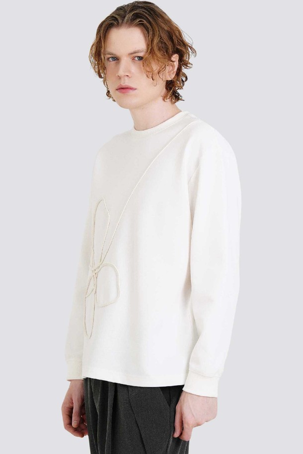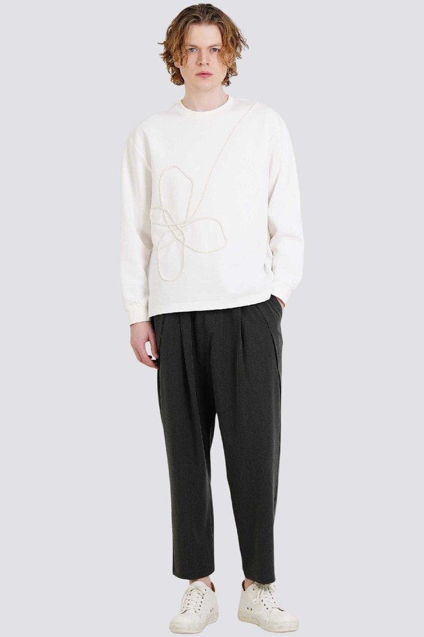 핸드 트리밍 자수 남자 라운드 긴팔 티셔츠 CXS25FKRT904 IVY