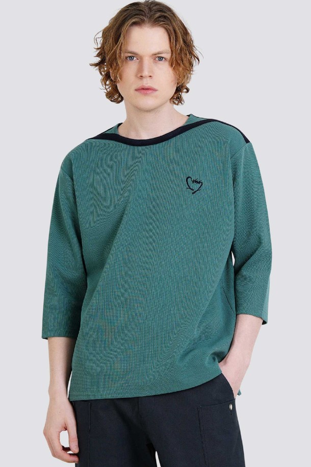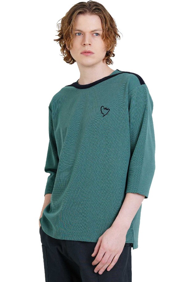 어깨배색 하트로고자수 7부소매 라운드 티셔츠 CXS25FKRT901 GRN