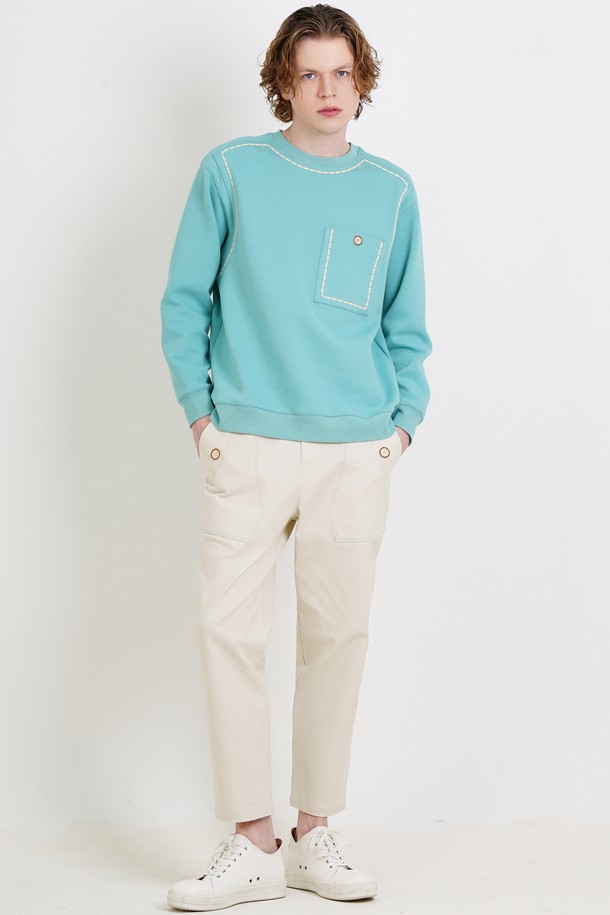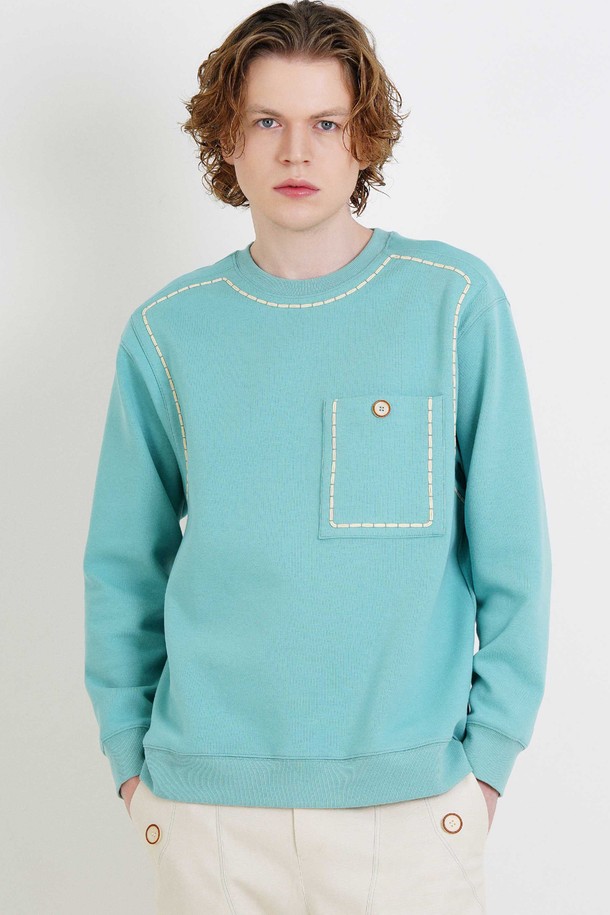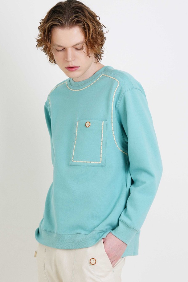 볼륨 스티치 라인 오버핏 맨투맨 티셔츠 CXS24SKMT301 KHA