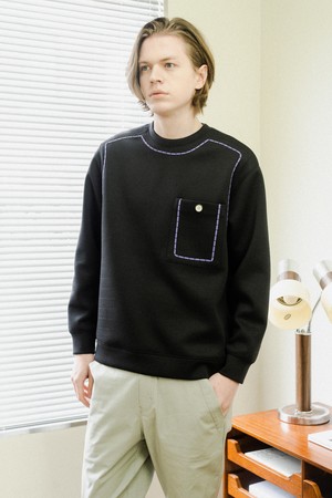 볼륨 스티치 라인 오버핏 맨투맨 티셔츠 CXS24SKMT301 BLA