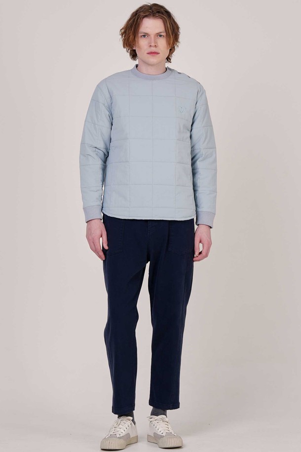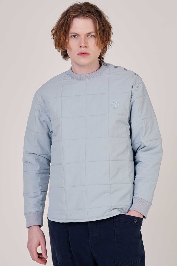 남자 4각퀼팅 로고자수 오버핏 맨투맨 CXS25WPMTC19 GRY