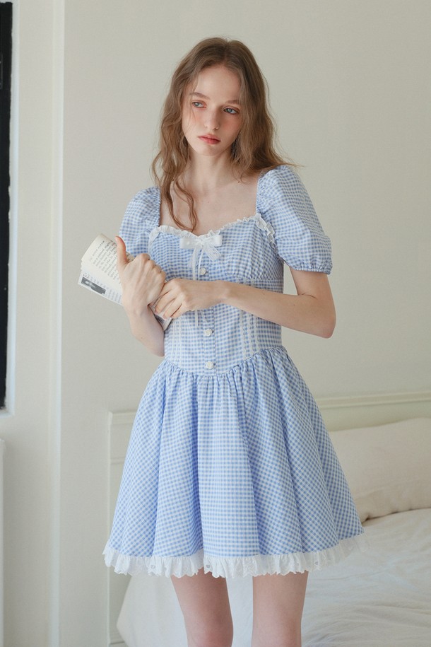 Check lace mini dress