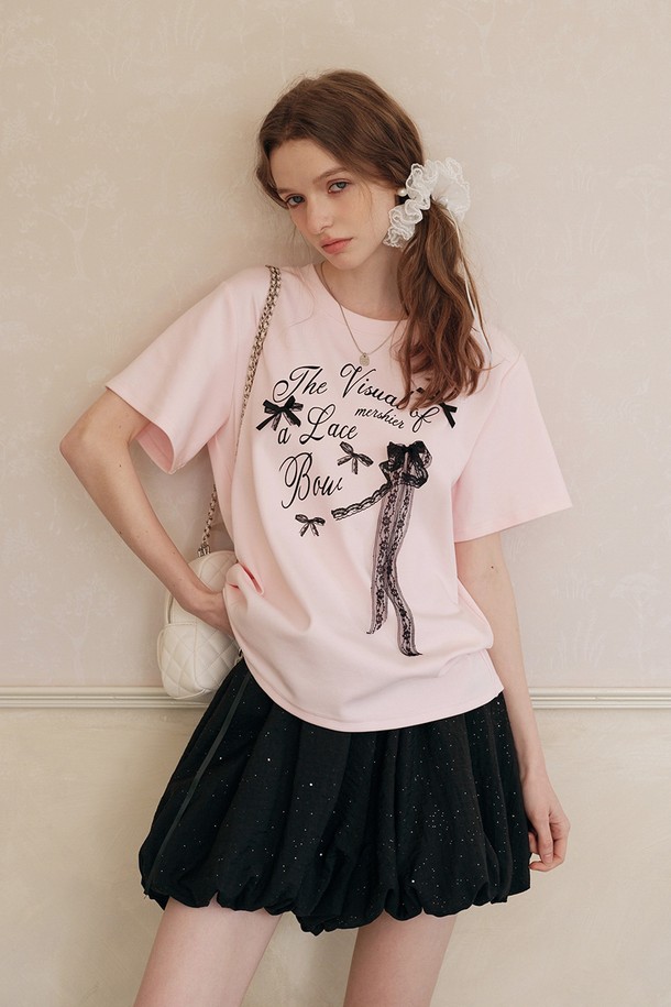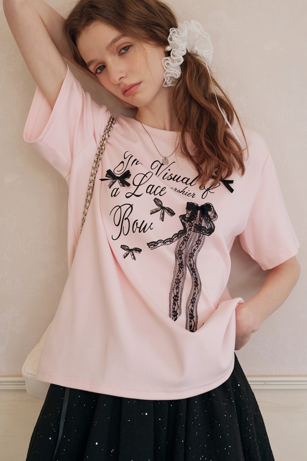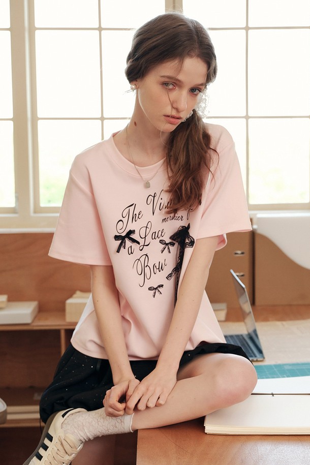 Lace bow lettering short sleeve top