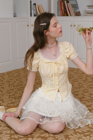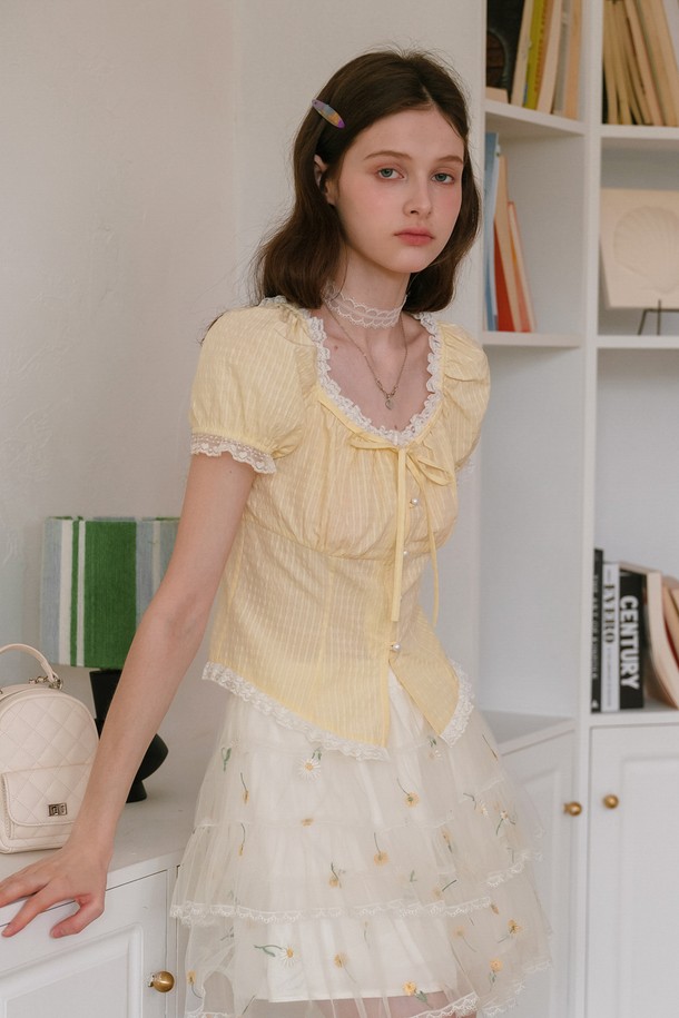 Pearl button lace blouse