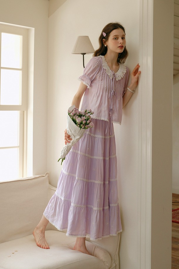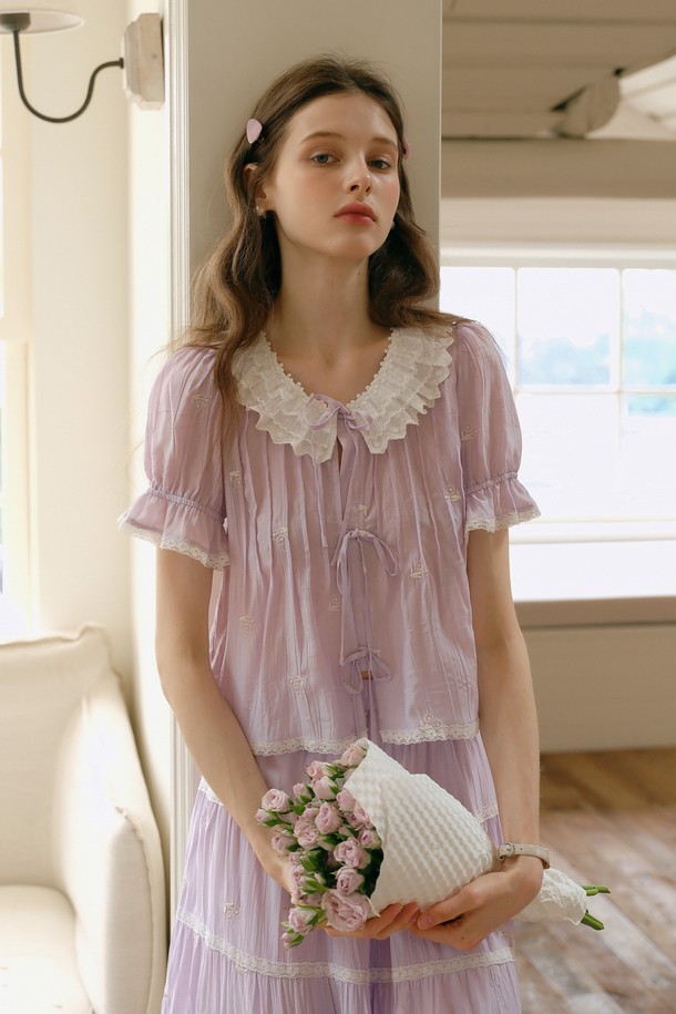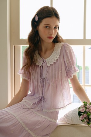 Lavender embroidery ribbon blouse