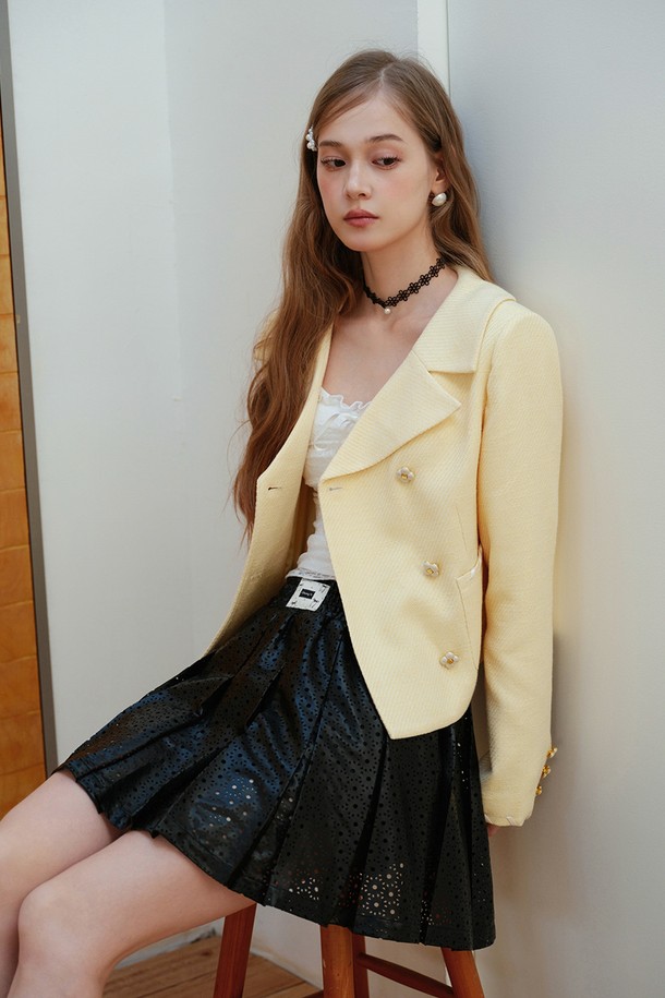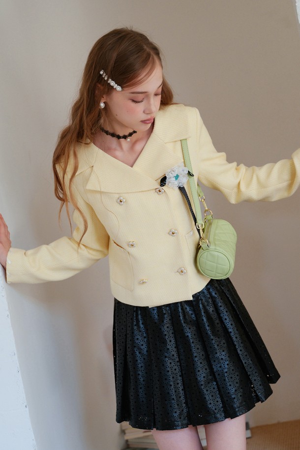 Flower button double tweed jacket
