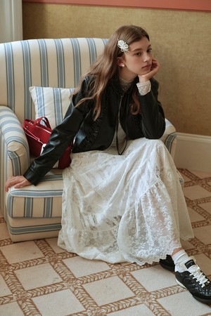 Lace splicing velvet skirt