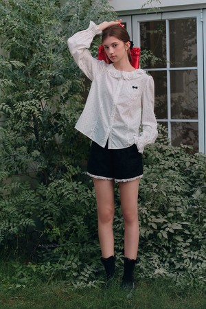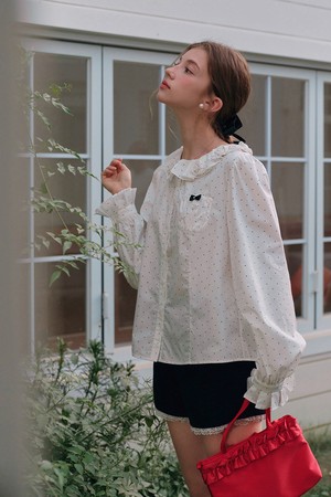 Flower collar polka dot blouse