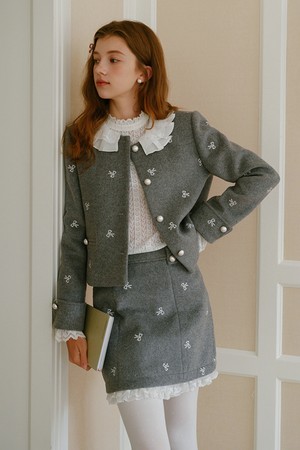 Ribbon embroidery wool jacket