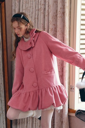 Bow collar balloon coat