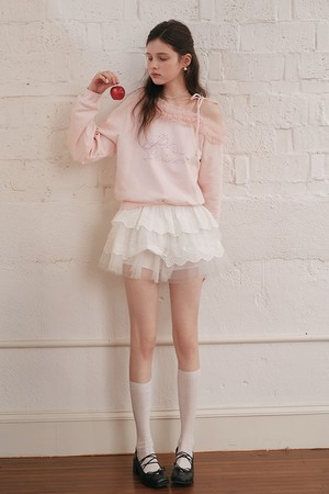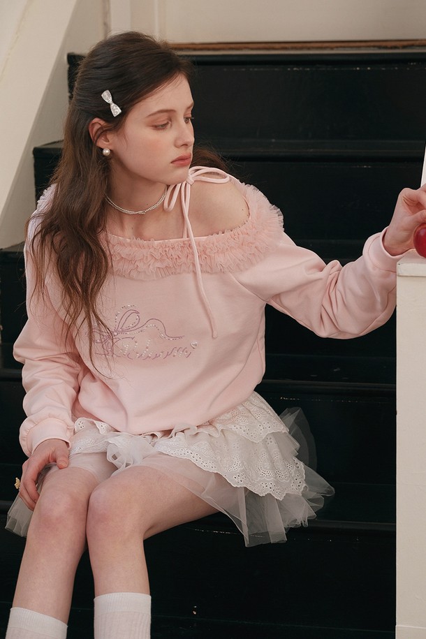 Mesh off-shoulder sweatshirt