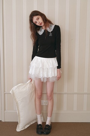 Lace collar slim long sleeve top
